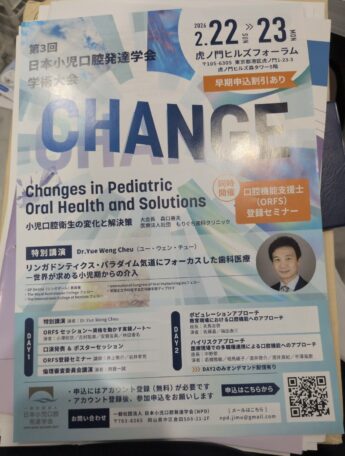 少し前の事になってしまいましたが、東京の森ビルで行われた日本小児口腔発達学会の学術大会に参加させていただきました。